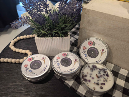 Tiny tin, big mood. Get ready to vibe out with Kobi Co.'s brand-new 4 oz. travel candle, complete with crackling wooden wick and embellished with chill-inducing amethyst crystals.