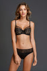 Balconette bra with triple segmented cups. Made from non-elastic lace fabric and elastic knit fabric. The model is underwired, with lower cup parts reinforced with thin foam. The series features elastic Italian lace with "cardonet" thread and elastic knit fabric.
