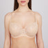 Bra made of elastic knit fabric and elastic lace. Soft underwired cups with triple diagonal segmentation create a round breast shape. The lower part of the cup is laminated with cotton fabric, providing better support for fuller busts and comfort in wear. Features a four-row closure for perfect volume adjustment. The width of the straps and closure varies depending on the bra size.