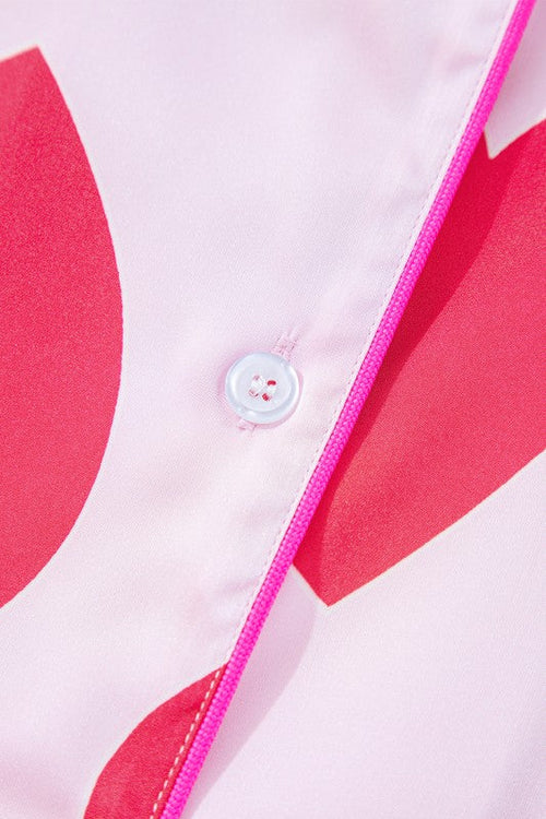 Women's Valentine's Day Pajama Set - Heart Print Short Sleeve Shirt & Pants